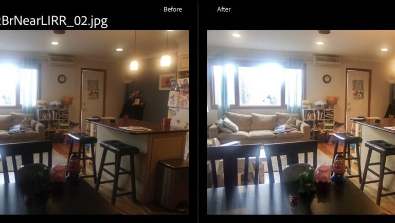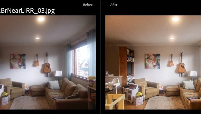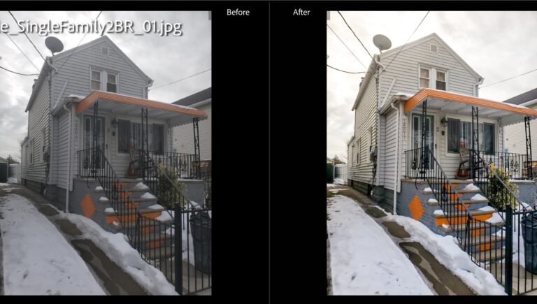 範例圖片說明:範例照片左邊是網友張貼的房屋出租照片,應該是用手機拍的;右邊是我調整過後的(室內看起來溫馨溫暖,室外看起來風光明媚)