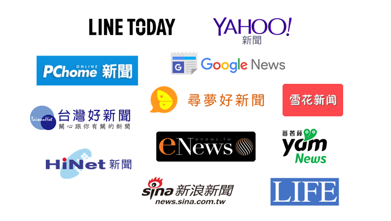 YAHOO奇摩新聞、Line Today、Google News、PChpme新聞、Hinet新聞、新浪網、eNews、Life新聞、台灣好新聞、蕃薯藤新聞、雅虎香港、尋夢好新聞、雪花新聞。(更新於2020/5/08)