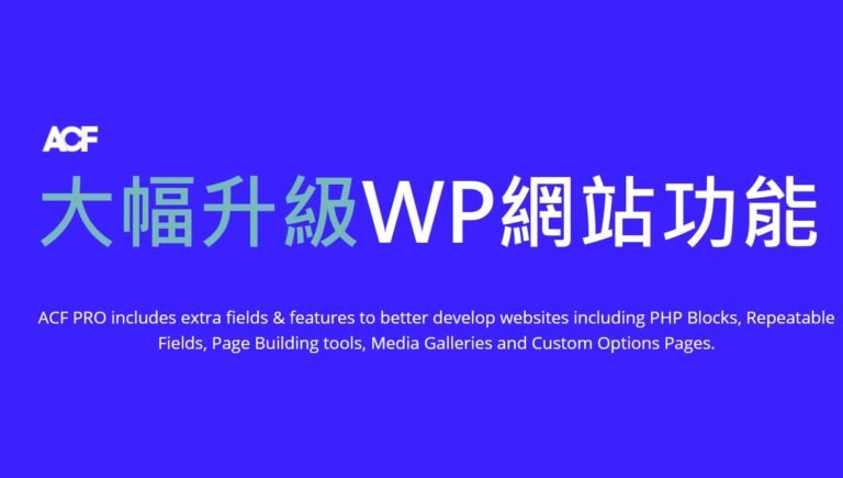 進階客製化欄位工具 Advanced Custom Fields (ACF) Pro 是 advancedcustomfields.com開發的Wordpress延伸套件工具,主要功能在於讓您完整控制頁面及客製化欄位資料,大幅升級您的WP網站,特色如下: