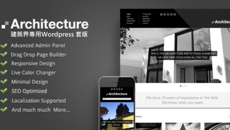 Architecture theme 是 GoodLayers開發,在themeforest.net銷售長紅的wordpress套版,非常適合需要極簡現代風的產業,例如建築師事務所,建築案開發商等.