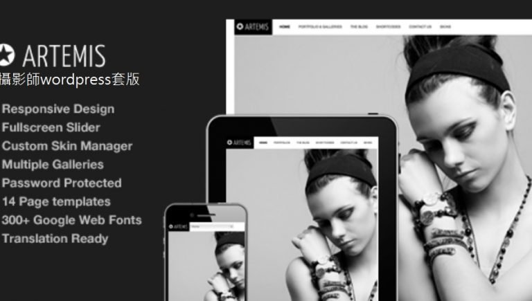 Artemis theme 是 ThemeGoods開發,在themeforest.net銷售長紅的wordpress套版,Artemis 有強悍的攝影作品展示功能,非常適合攝影師,個人攝影作品,婚紗業者等,Artemis theme 主要特色如下: