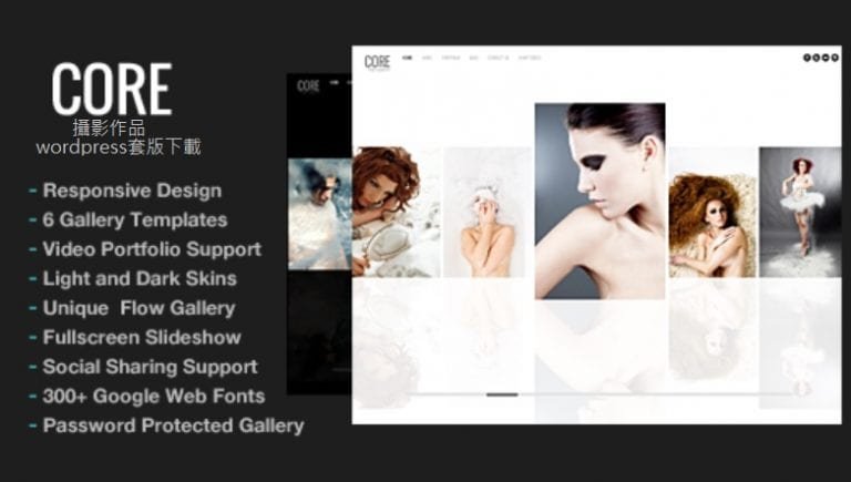 Core theme 是 ThemeGoods開發,在themeforest.net銷售長紅的wordpress套版,內建完整網站建置功能,如3種首頁設計選擇,作品圖片全螢幕支援,….等,讓您簡單完成高超攝影師作品集網站設計.