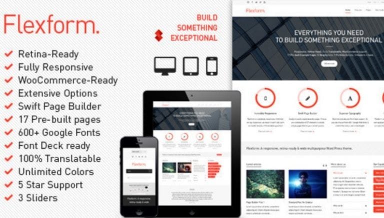 Flexform theme 是 SwiftIdeas開發,在themeforest.net銷售長紅的wordpress套版,Flexform 模版具有簡潔有力的設計,RWD特色,多功能特性適合各類網站使用.