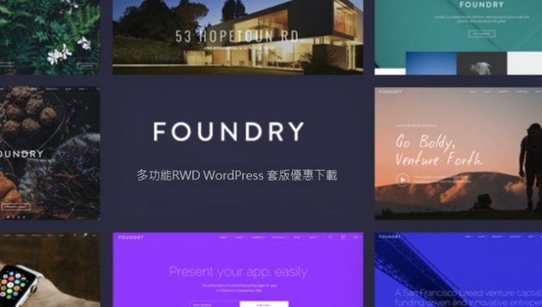 Foundry theme 是 tommusrhodus開發,在themeforest.net銷售長紅的wordpress套版,Foundry 模版具有簡潔有力的設計,優異的作品展示功能,非常適合各類企業及個人網站使用.
