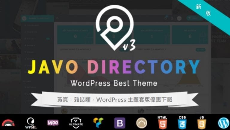 Javo Directory theme 是 javothemes開發,在themeforest.net銷售長紅的wordpress套版,Javo Directory 完整目錄黃頁功能,幫助您輕鬆使用wordpress建立專屬黃頁/雜誌類網站.