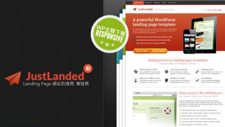 JustLanded theme ShapingRain開發,在themeforest.net銷售長紅的wordpress套版,JustLanded 主題套版讓您簡單快速完成專業的網站到達頁. 著陸頁.