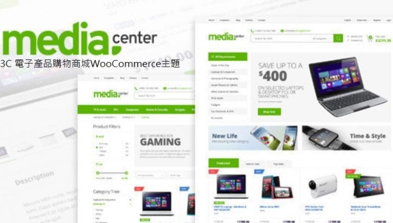 MediaCenter 是 MadrasThemes開發,在themeforest.net銷售長紅的Woocommerce套版,MediaCenter 模版具有簡潔現代設計,流暢使用介面,100% RWD,相當容易客製化調整的特色.