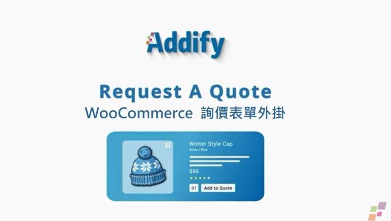 WooCommerce Request a Quote 詢價單外掛主要功能在於讓用戶將有興趣的商品加到詢價/報價區(加到購物車的概念),並進一步提交您定義的詢價/報價表單來跟您索取報價。…..更多資訊請見WooCommerce Request a Quote 詢價單外掛官網 連結