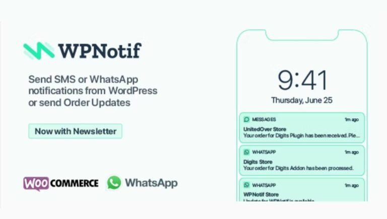 WPNotif: WordPress SMS & WhatsApp Message Notifications是 UnitedOver 開發的WooCommerce延伸套件工具