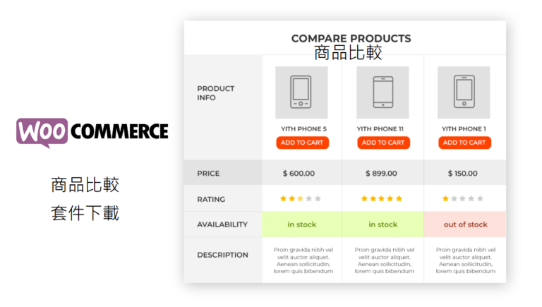 YITH woocommerce compare premium,進階商品比較外掛主要功能在於讓網友能輕鬆有效率地比較您商城中的各類商品,加速購買決策速度,提高整體網站轉換率,其他特點如下方說明圖…..更多資訊請見官網 連結